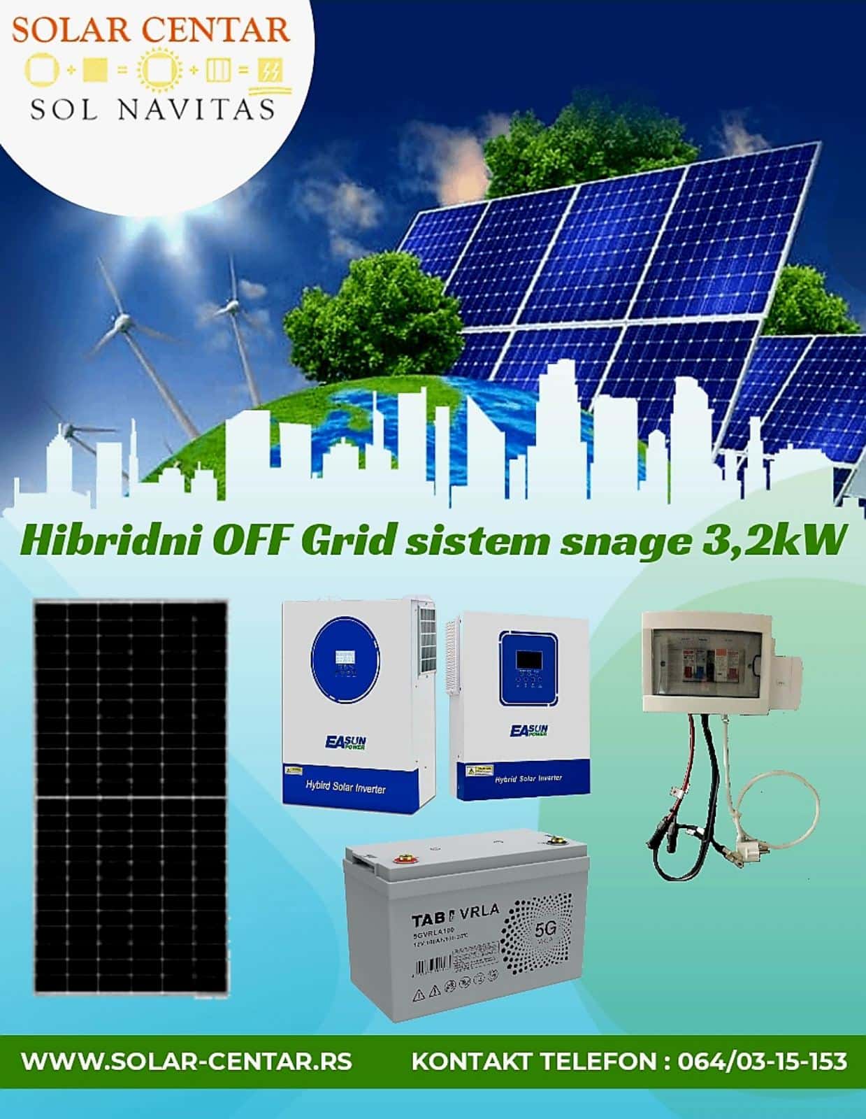 Šifra proizvoda: Kompleti off grid sa hibridnim inverterom 3,2kW Kategorija: OFF Grid solarne elektrane sa hibridnim inverterima za vikendice i kuće -baterijski sistemi